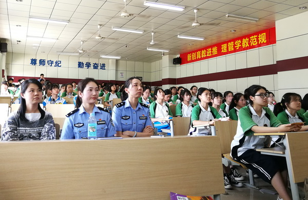新站区交警大队袁伟警官为大家介绍近些年来交通事故的严峻形势,强调交通安全的重要性,不断引导同学们参与到活动中去。鉴于近年来,未成年人犯罪情况及其特点,新站区公安局分局团委以“杜绝不良行为,远离违法犯罪”为主题,特别针对违法犯罪、电信诈骗的性质、特点进行了生动有趣的解说。